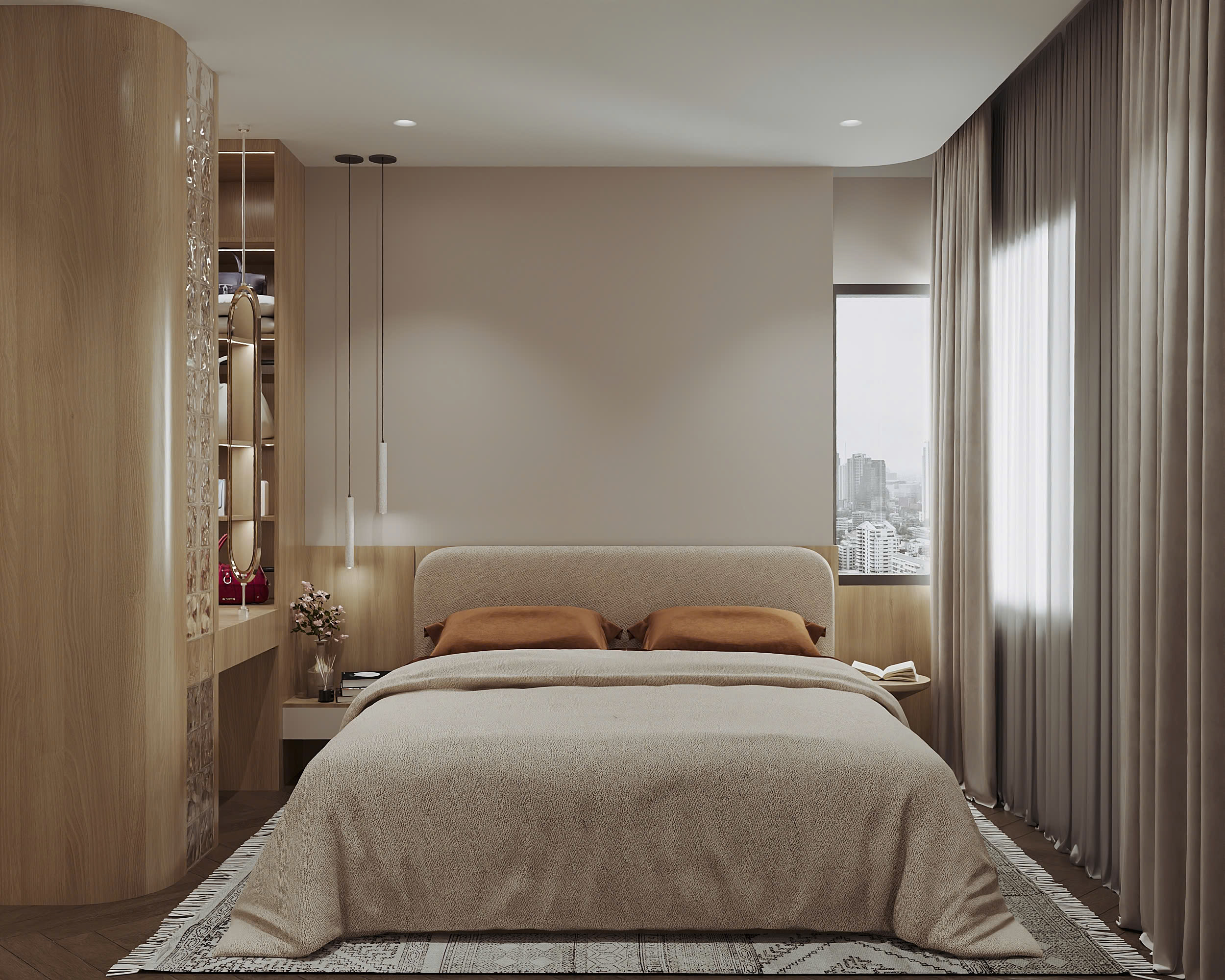 Nếu có bàn trang điểm hoặc tủ TV, mình sẽ thêm phần mô tả theo thiết kế của bạn.